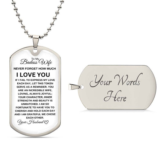 To My Badass Wife | Luxury Dog Tag Necklace
